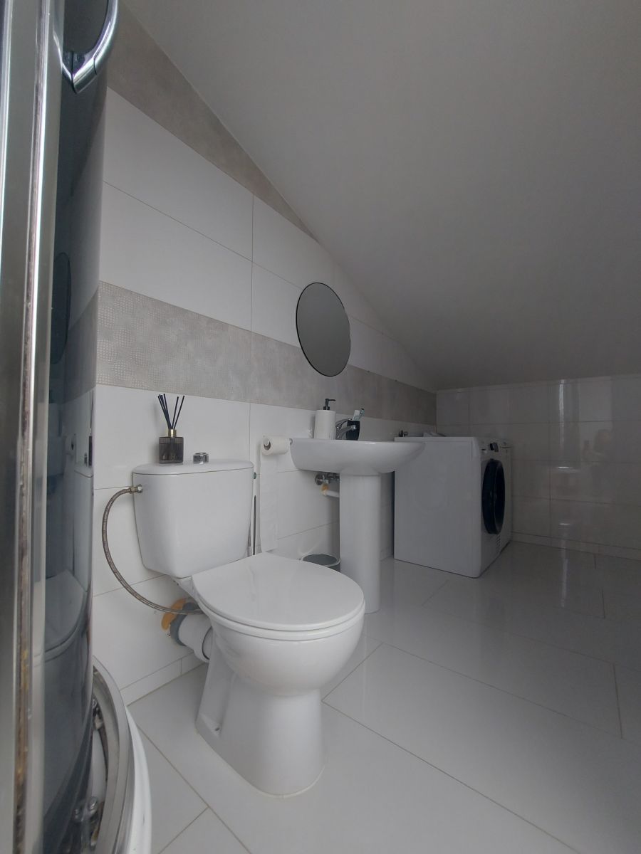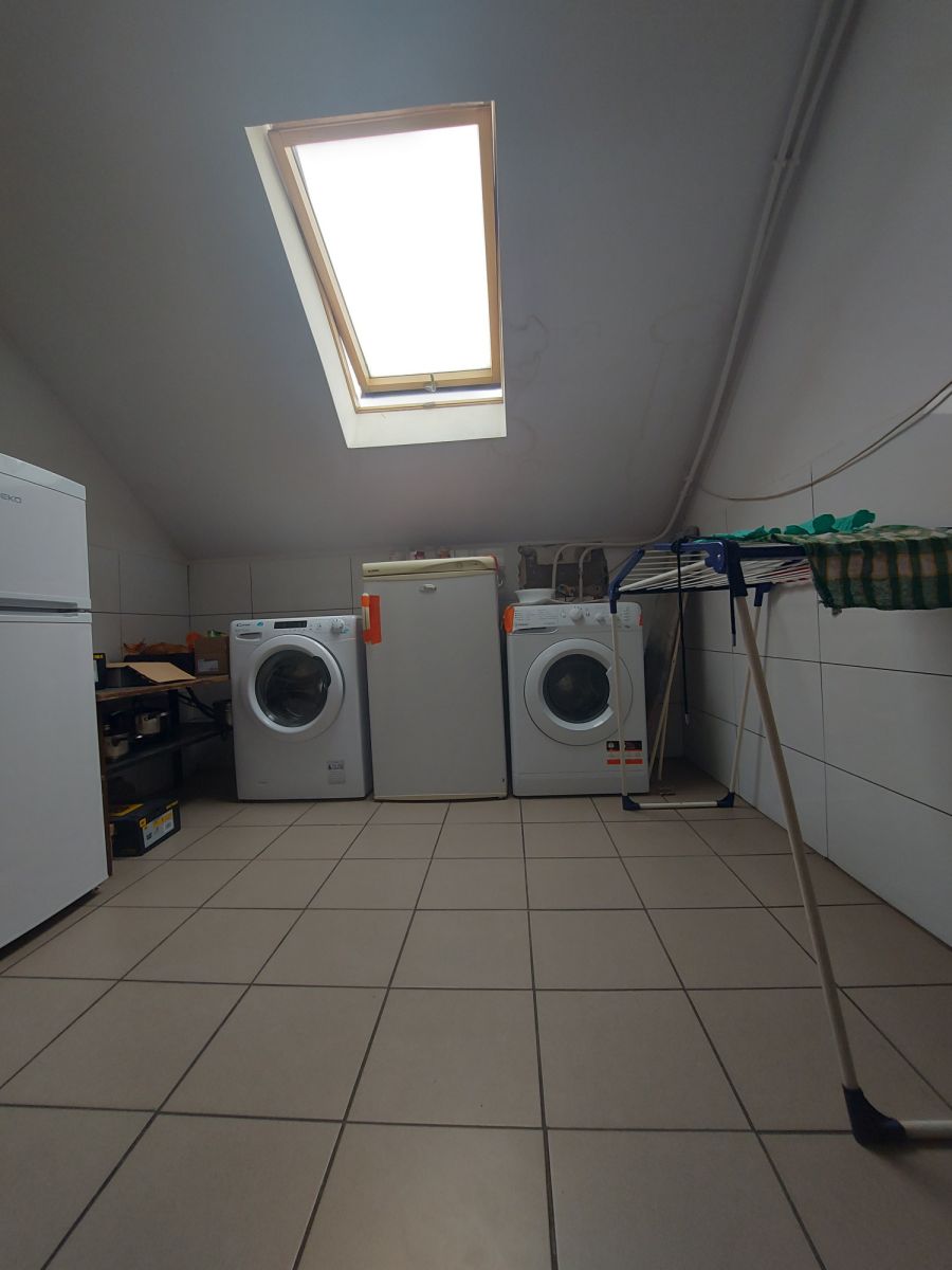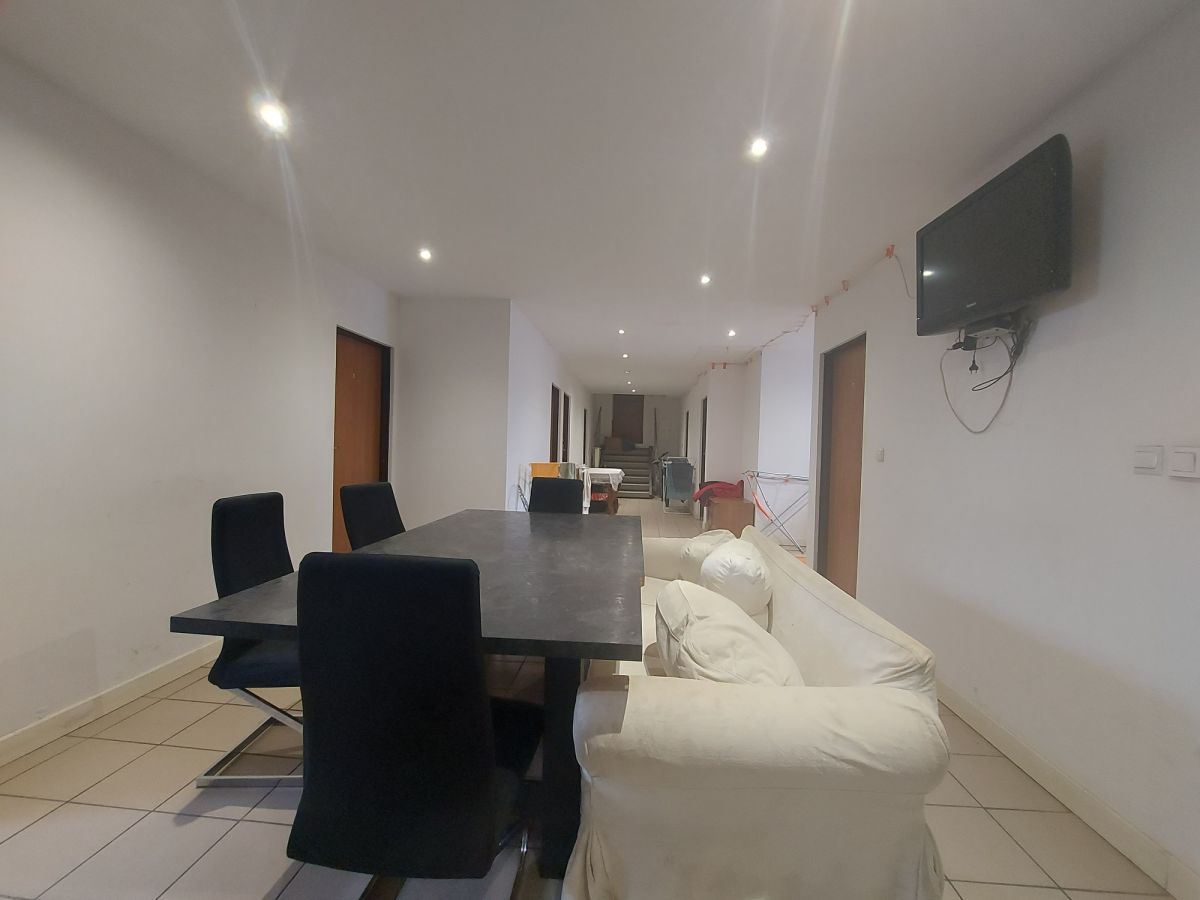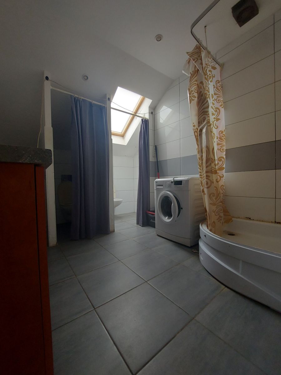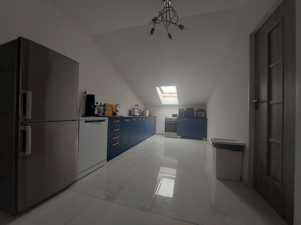 Druga część na piętrze budynku to dwa niezależne lokale mieszkalne. Pierwszy lokal o powierzchni ok. 120 m2 to pięciopokojowy apartament z kuchnią i łazienką. Natomiast druga część piętra o powierzchni ok. 180 m2 jest wynajmowana jako siedem niezależnych pokoi dwuosobowych ze wspólną łazienką i kuchnią.