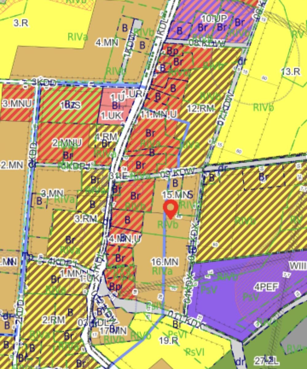 Działka zadrzewiona, w kształcie prostokąta, o równym nachyleniu terenu. Przedmiotowa działka jest objęta miejscowym planem zagospodarowania przestrzennego ( uchwała nr XXI/19/2020 ). Podstawowe ustalenia: