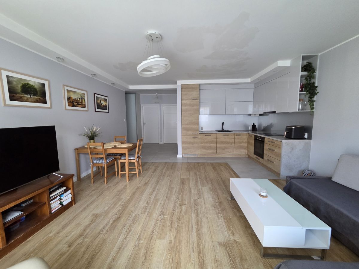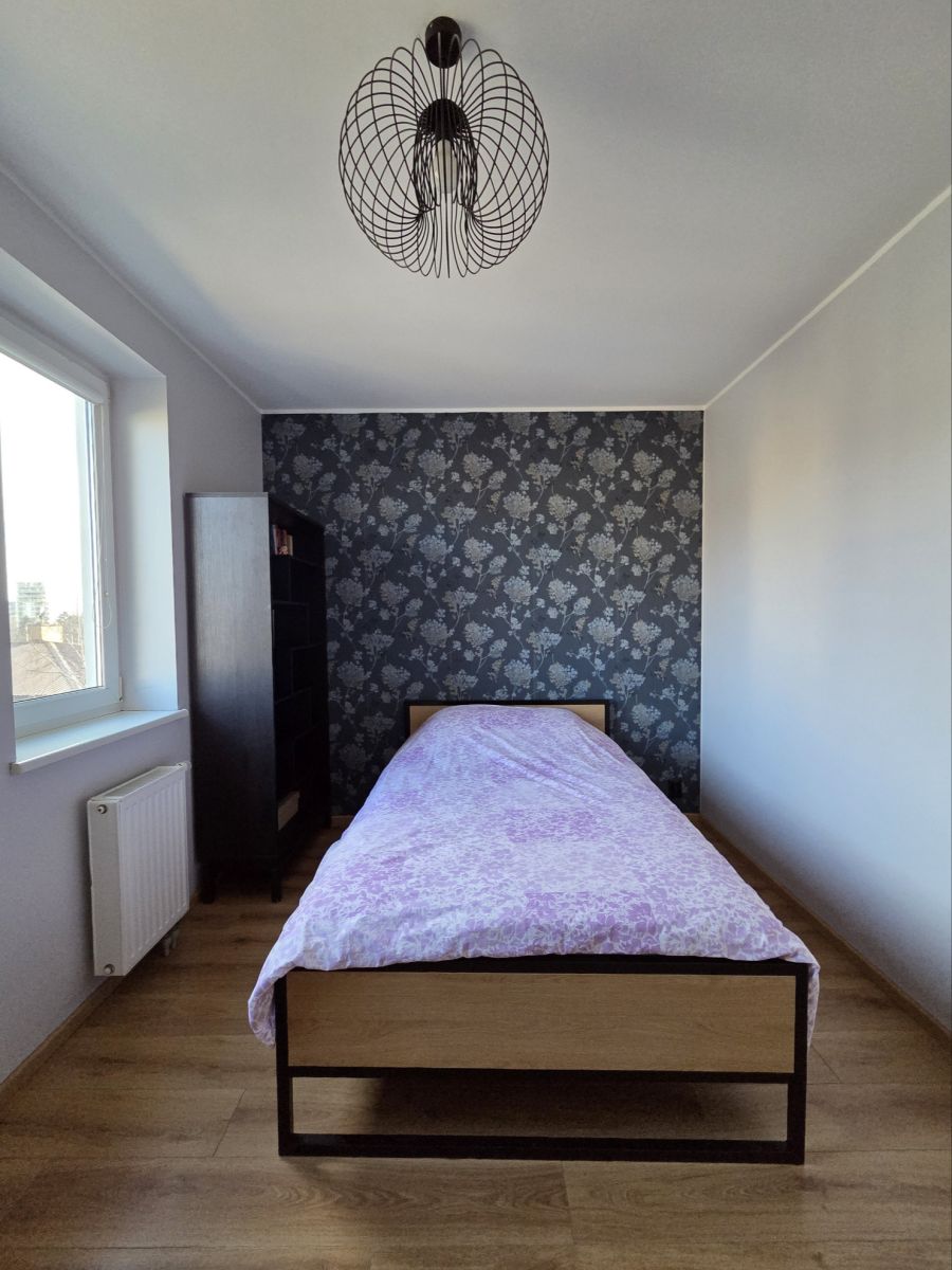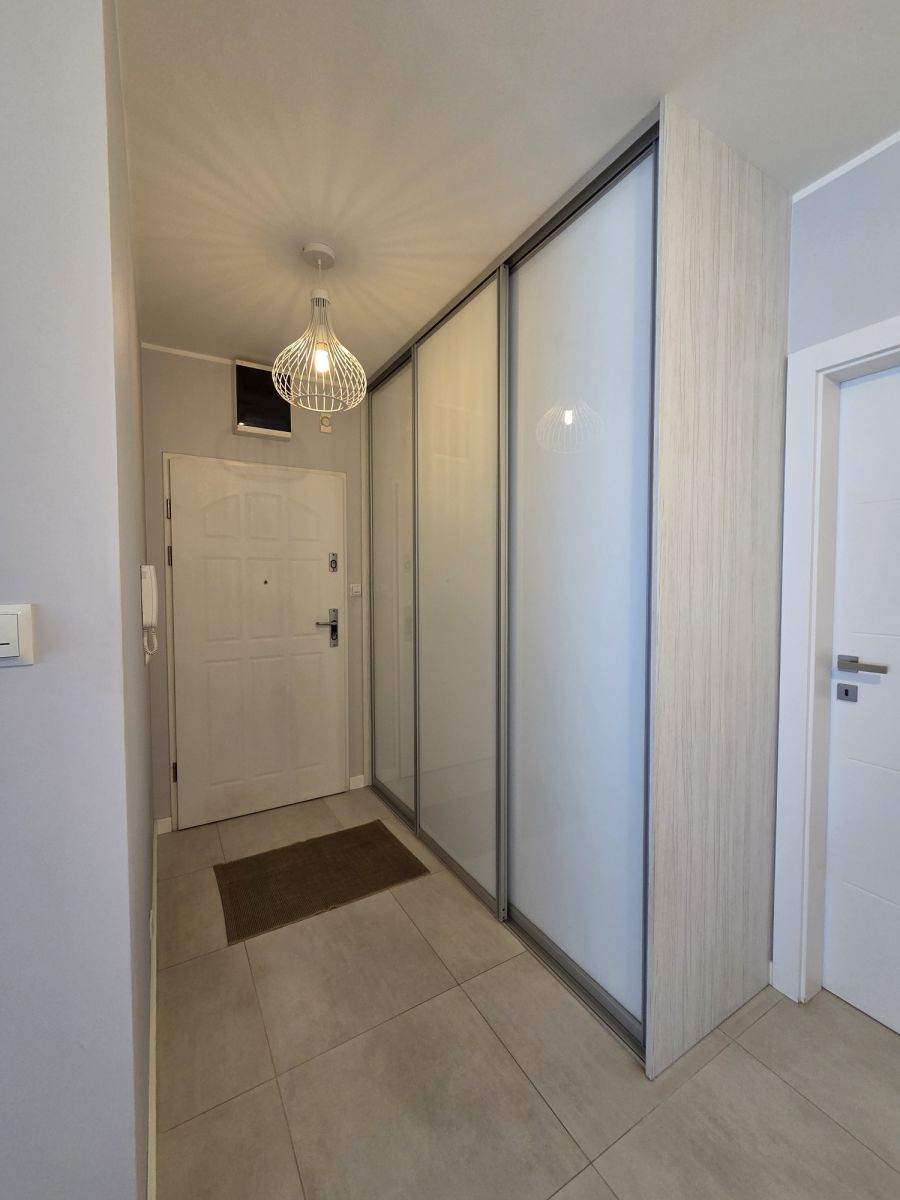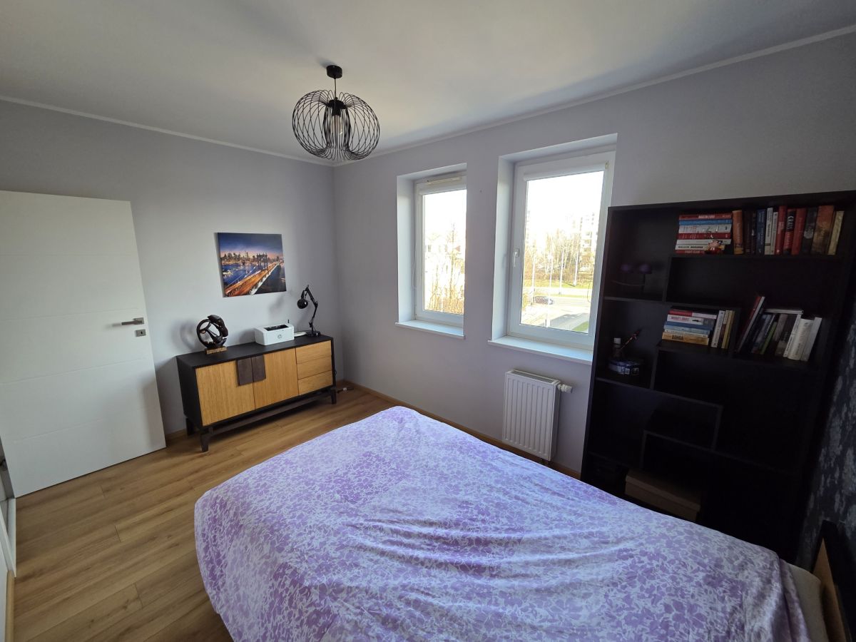 Budynek dewelopera Targo z 2002r., ocieplony i otynkowany. Szerokie, zadbane klatki. Lokal usytuowany jest na drugim piętrze. Wewnątrz mieszkania znajduje się jeden pokój z aneksem kuchennym, sypialnia, pokój, łazienka z WC, przedpokój. W lokalu na podłodze zastosowano panele i terakotę, zaś ściany zostały pomalowane w jasnym kolorze. Łazienka w gustownej glazurze i terakocie z prysznicem i pralką. Kuchnia jasna w modnej zabudowie wraz ze sprzętem AGD - ( lodówka, zmywarka, płyta indukcyjna, piekarnik, okap ). W lokalu mieszkalnym pozostaje większość umeblowania widocznego na zdjęciach, w tym pojemne zabudowy szafy w przedpokoju i małym pokoju. Z dużego pokoju wyjście na balkon od strony południowej.