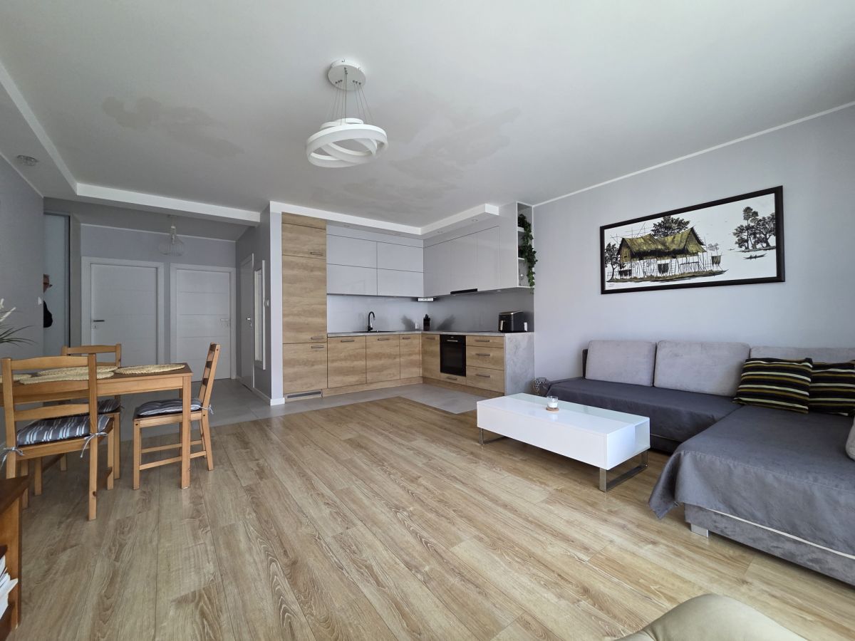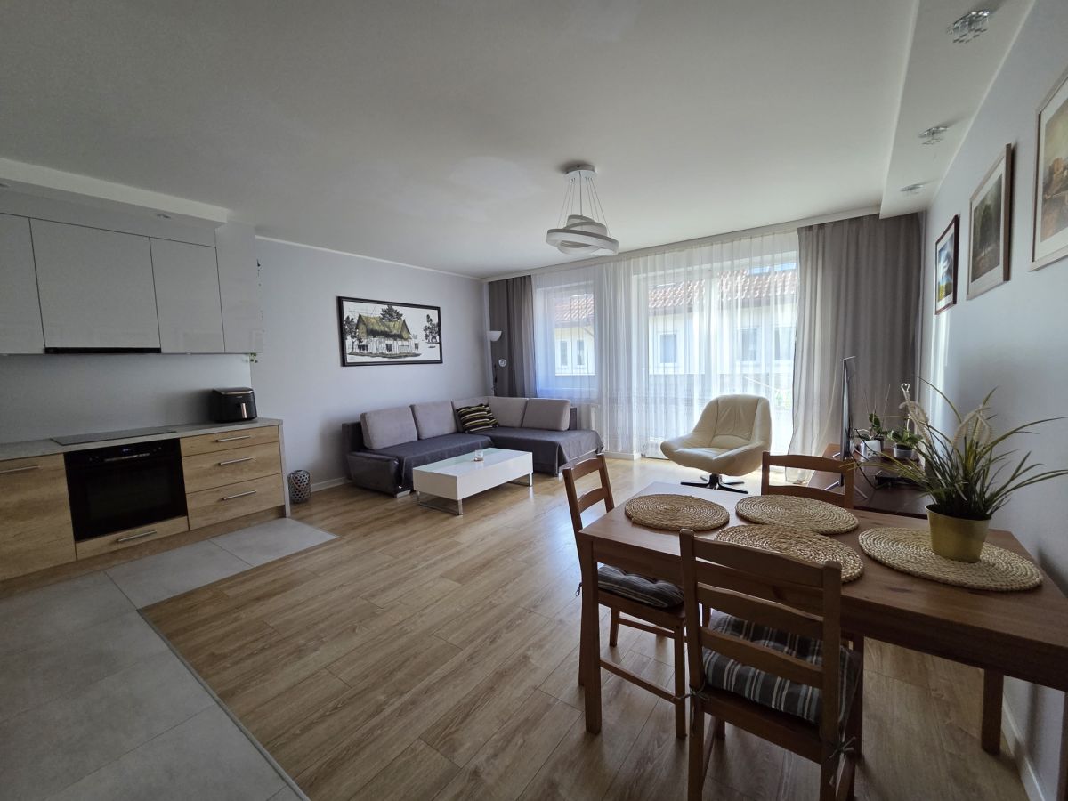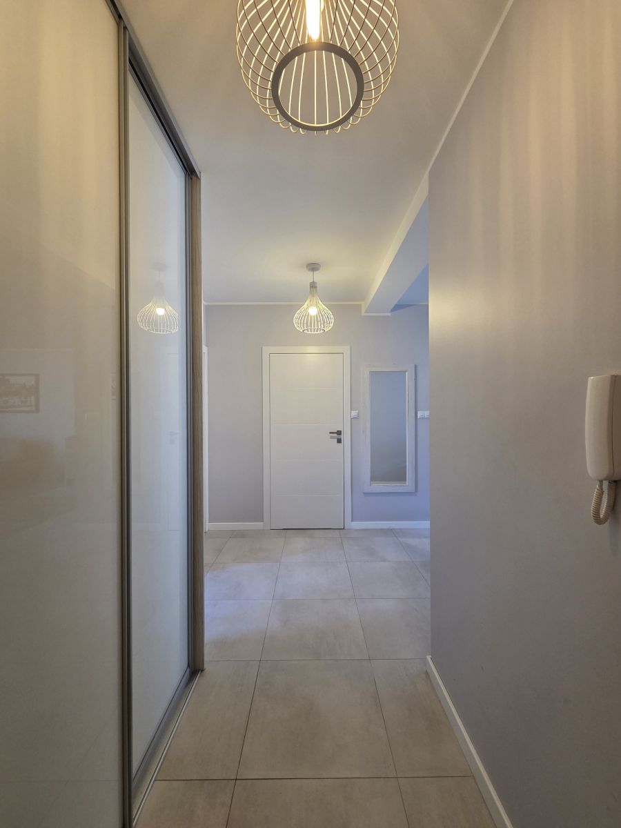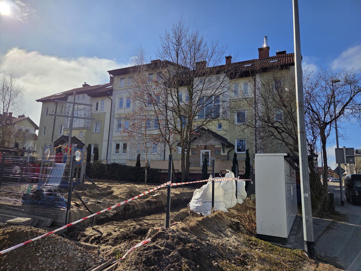 Budynek dewelopera Targo z 2002r., ocieplony i otynkowany. Szerokie, zadbane klatki. Lokal usytuowany jest na drugim piętrze. Wewnątrz mieszkania znajduje się jeden pokój z aneksem kuchennym, sypialnia, pokój, łazienka z WC, przedpokój. W lokalu na podłodze zastosowano panele i terakotę, zaś ściany zostały pomalowane w jasnym kolorze. Łazienka w gustownej glazurze i terakocie z prysznicem i pralką. Kuchnia jasna w modnej zabudowie wraz ze sprzętem AGD - ( lodówka, zmywarka, płyta indukcyjna, piekarnik, okap ). W lokalu mieszkalnym pozostaje większość umeblowania widocznego na zdjęciach, w tym pojemne zabudowy szafy w przedpokoju i małym pokoju. Z dużego pokoju wyjście na balkon od strony południowej.
