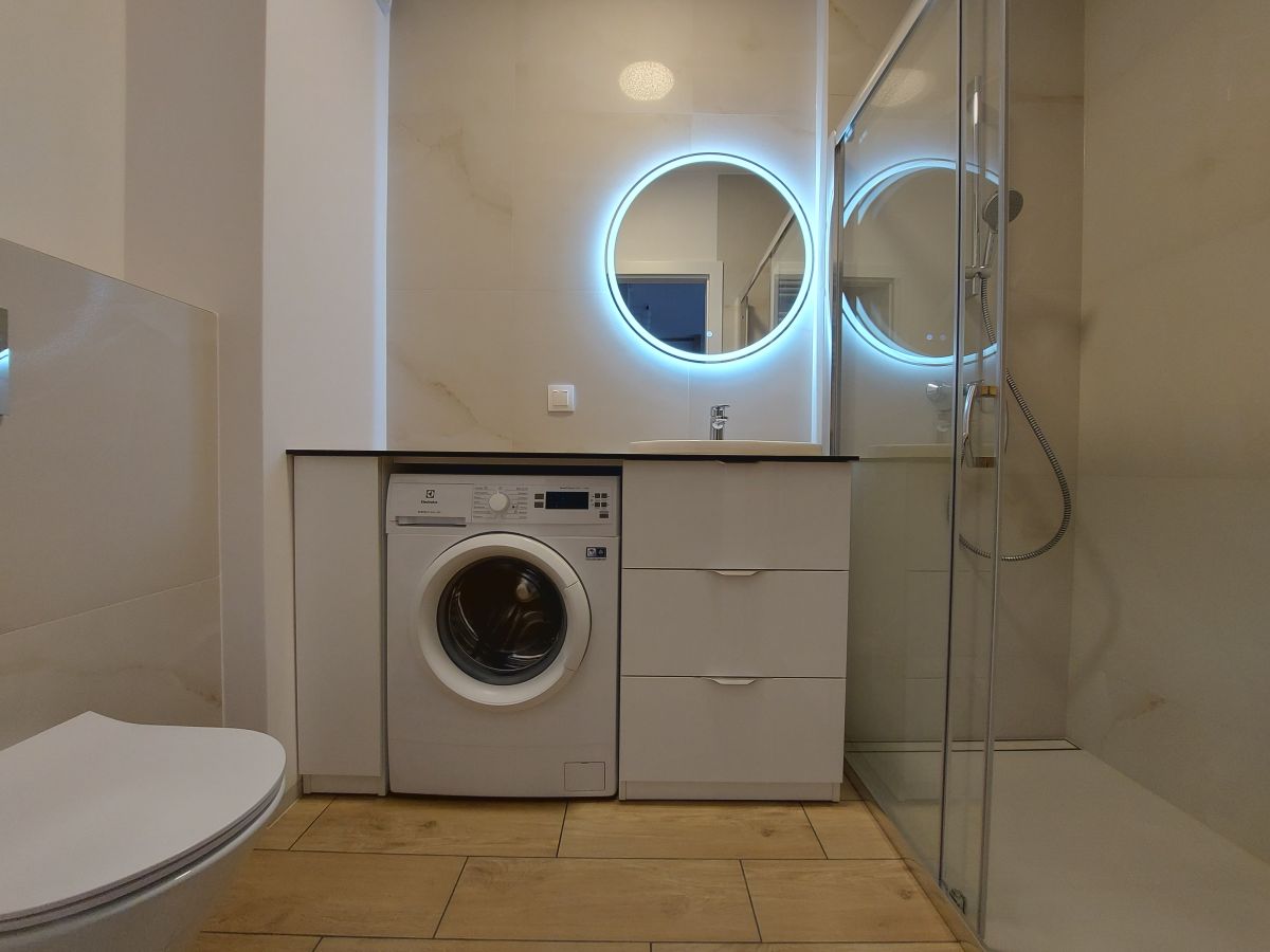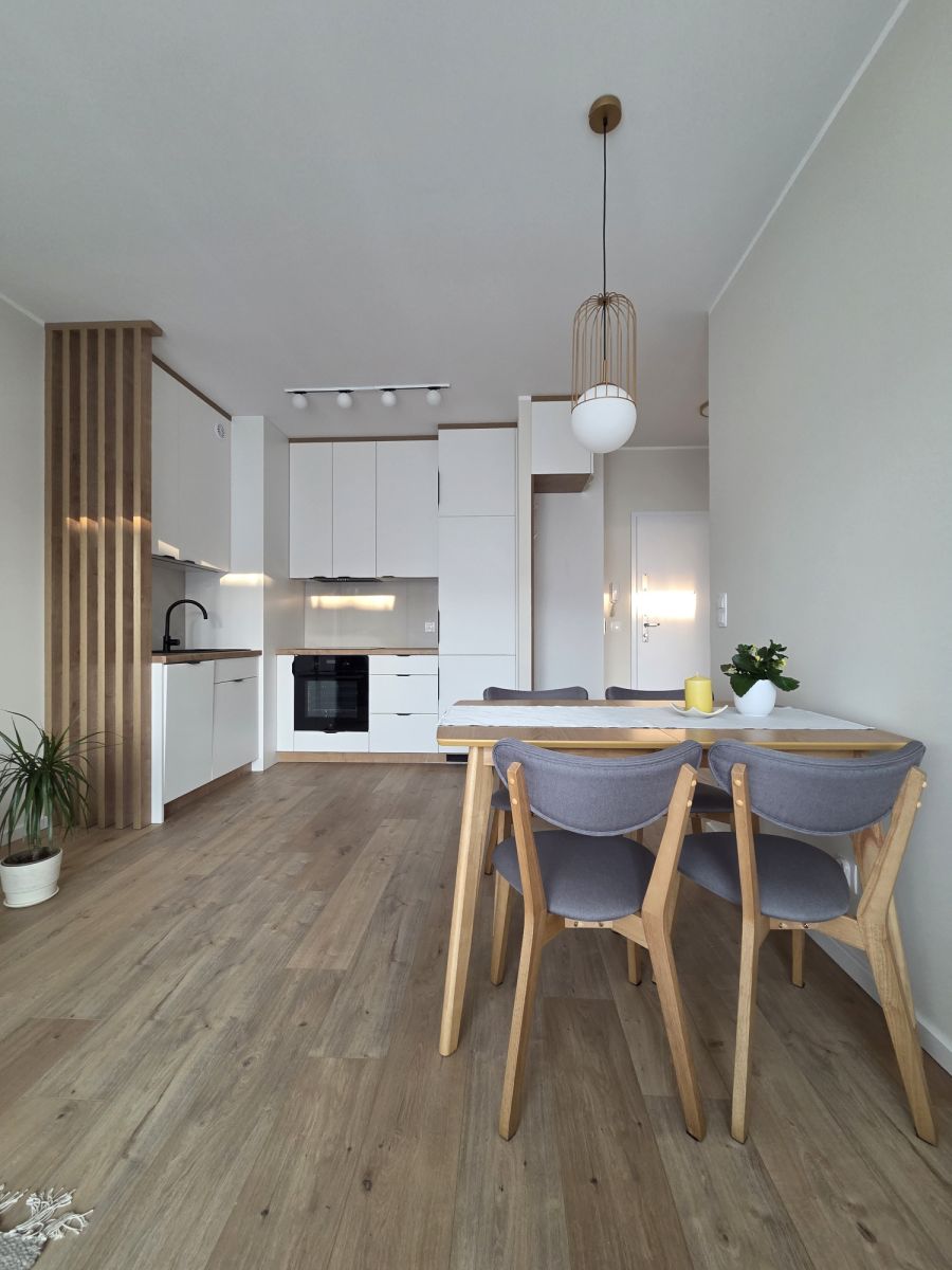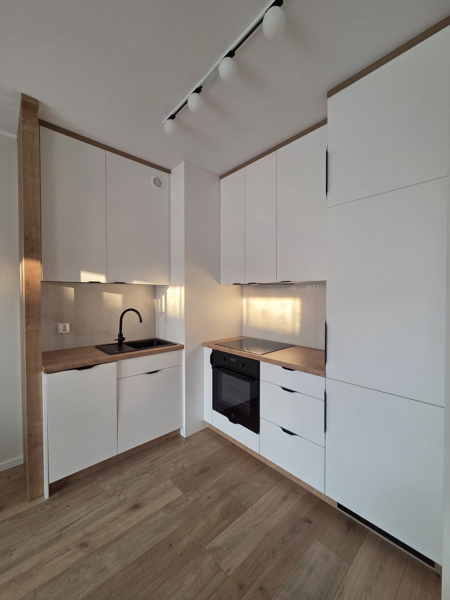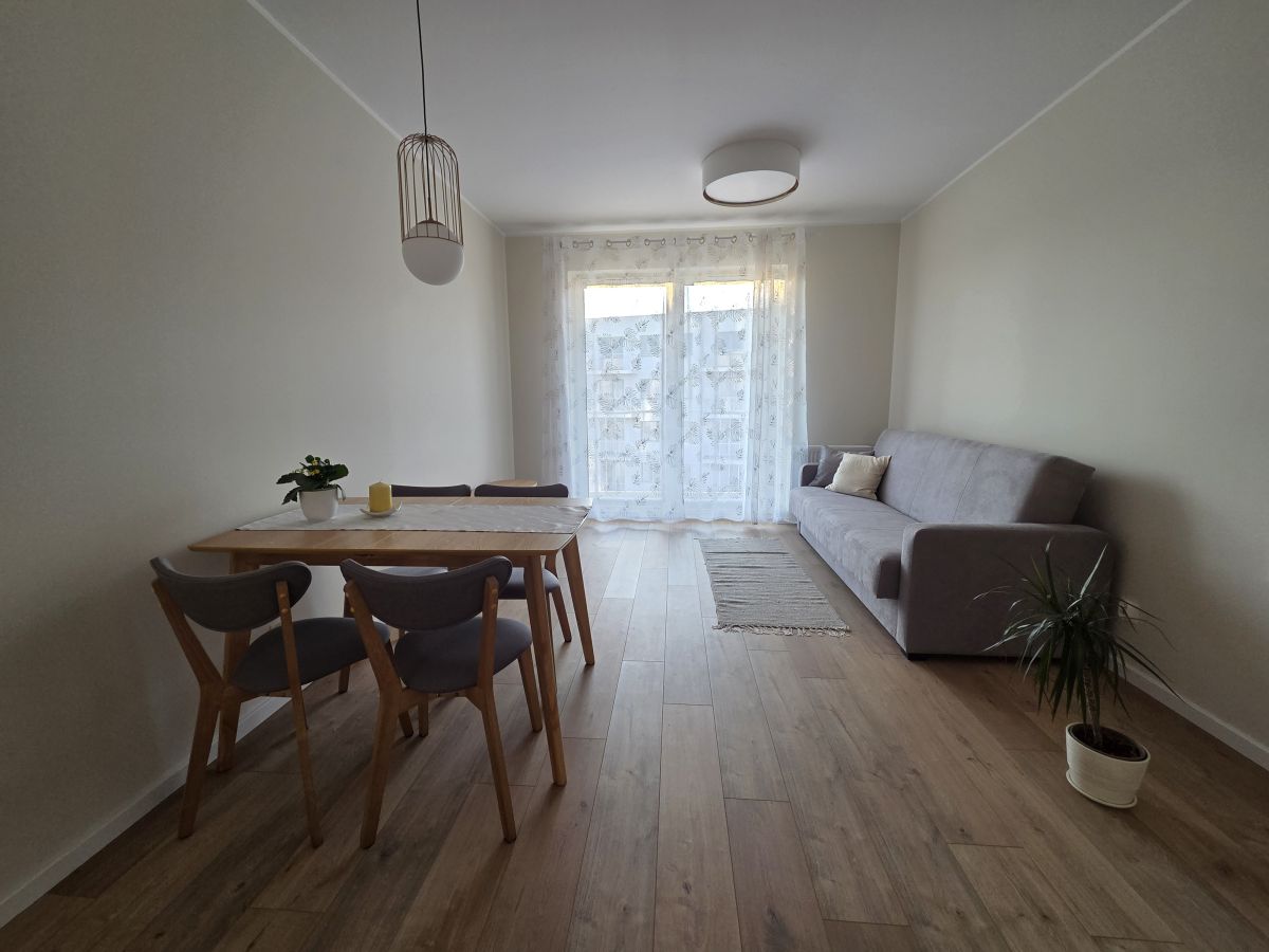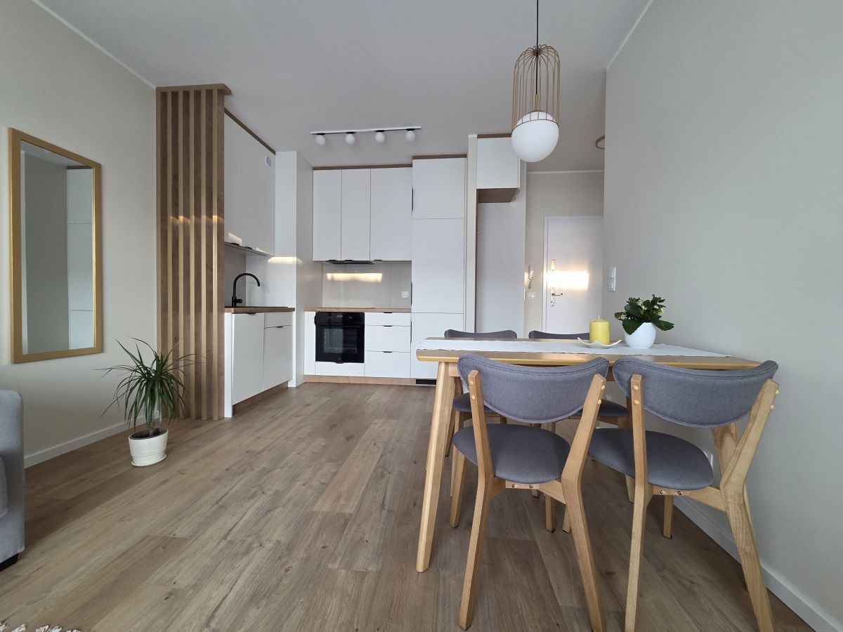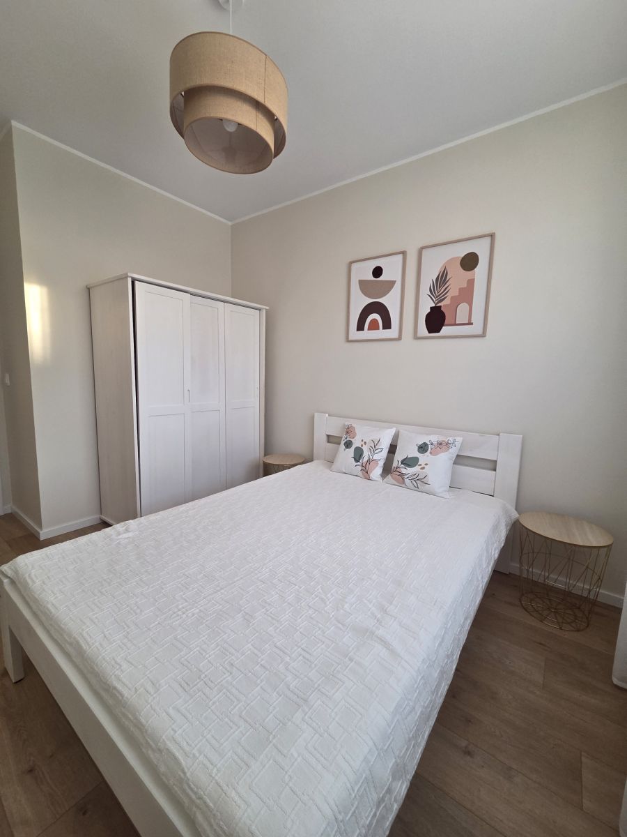 Budynek dewelopera EuroStyl z 2025r., ocieplony i otynkowany z windą. Klatka zadbana. Wewnątrz mieszkania znajduje się jeden pokój z aneksem kuchennym, sypialnia, łazienka z WC, przedpokój. W lokalu na podłodze zastosowano panele, zaś ściany zostały pomalowane w jasnym kolorze. Łazienka w gustownej glazurze i terakocie z kabiną prysznicową i pralką. Kuchnia jasna w modnej zabudowie wraz ze sprzętem AGD - nowy na gwarancji ( lodówka, zmywarka, płyta indukcyjna, piekarnik, okap ). W lokalu mieszkalnym pozostaje umeblowanie widoczne na zdjęciach. Lokal usytuowany jest na trzecim piętrze z możliwością wyjścia na balkon.